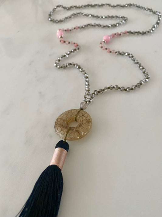 Sold out for nowLOTUS BEAUTY ANTIQUE CARVED NEPHRITE JADE MANDALA NECKLACE