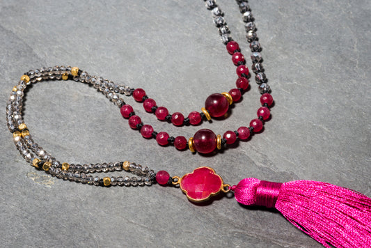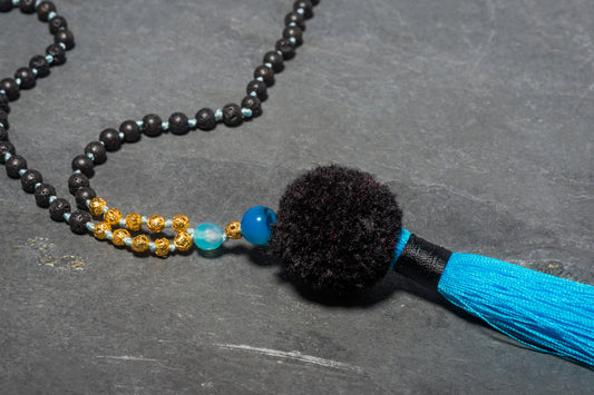 BYZANTINE BLUE POM POM NECKLACE