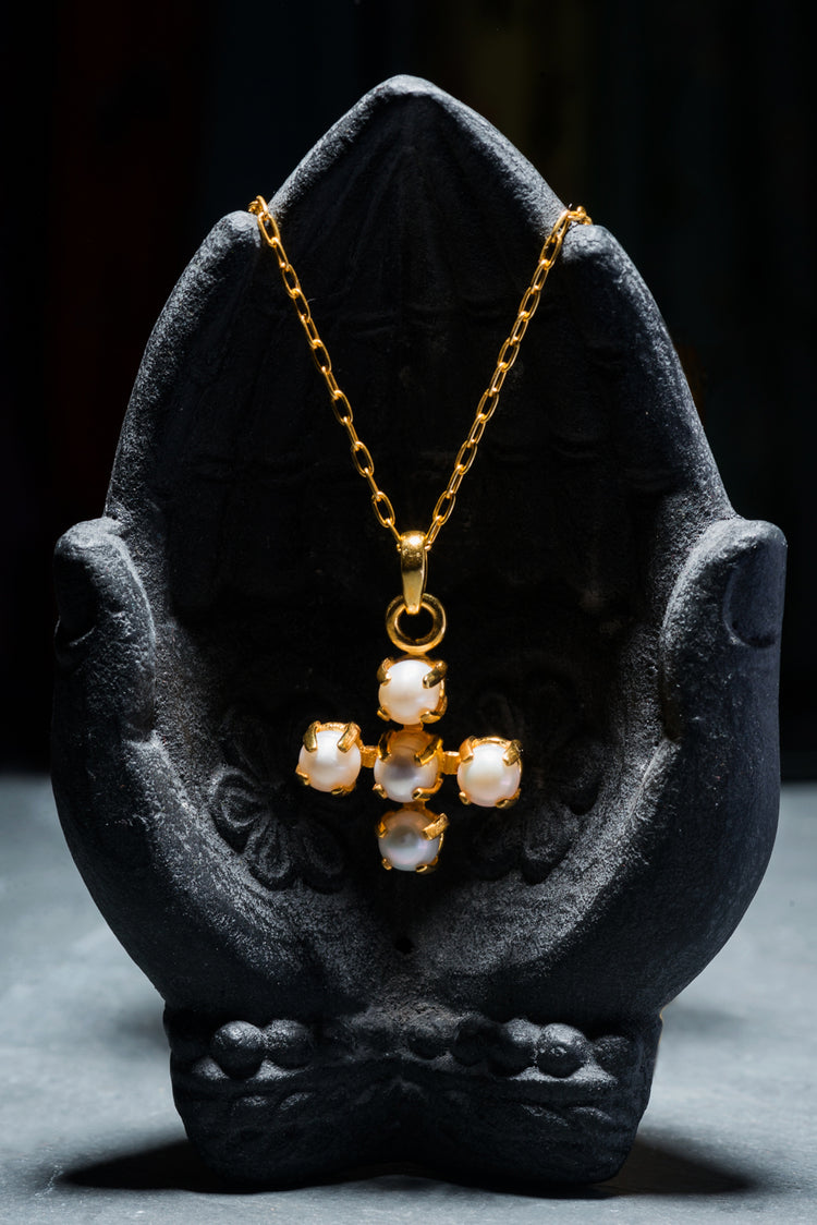 Sold out for nowPEARL CROSS PENDANT GOLD 41cm