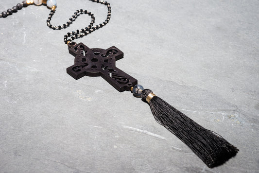 Sold out for nowBLACK PEARL CROSS PENDANT GOLD 41cm
