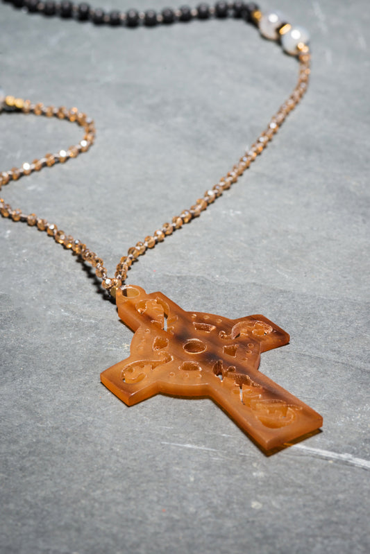 AMBER AMULET HORN CROSS WITH TASSEL
