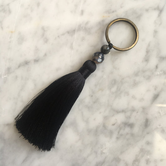 BLACK ORCHID TEMPLE SILK TASSEL BAG CHARM