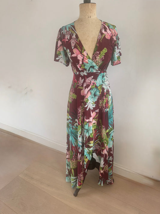 DARK TROPICS WRAP DRESS