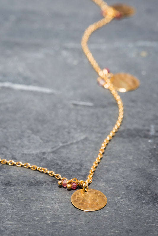 TOURMALINE FIVE DISC NECKLACE GOLD