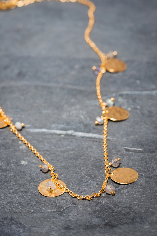 LABRADORITE SIX DISC NECKLACE GOLD