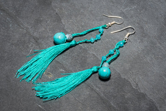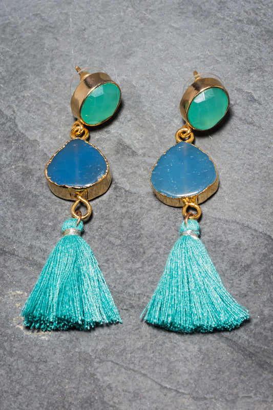 OCEAN SEMI PRECIOUS TASSEL EARRINGS