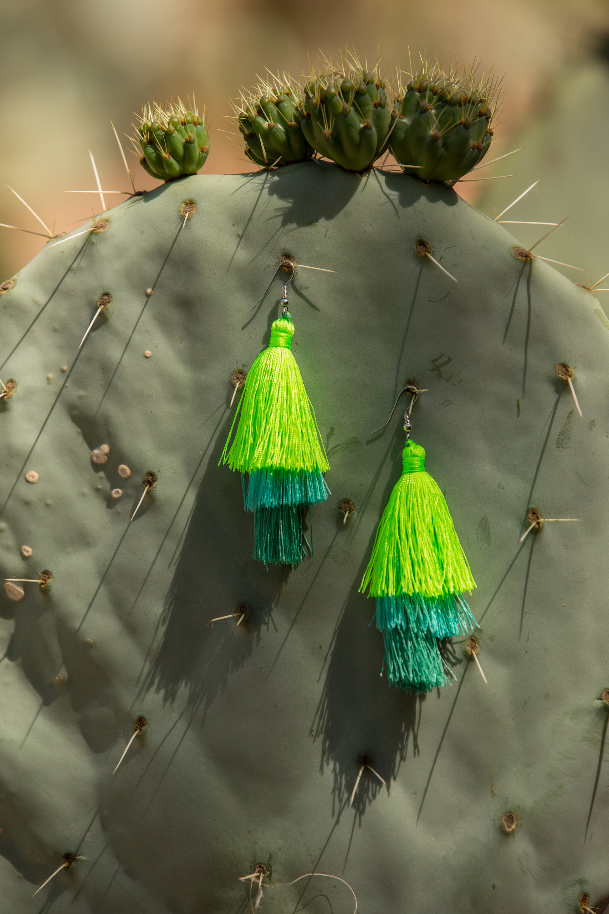 This hand-made layered ombre tassel is the perfect summer or travel statement. Descending from bright lime, through turquoise to deep emerald. Adds the perfect pop of uplighting colour and lifts your vibe.
