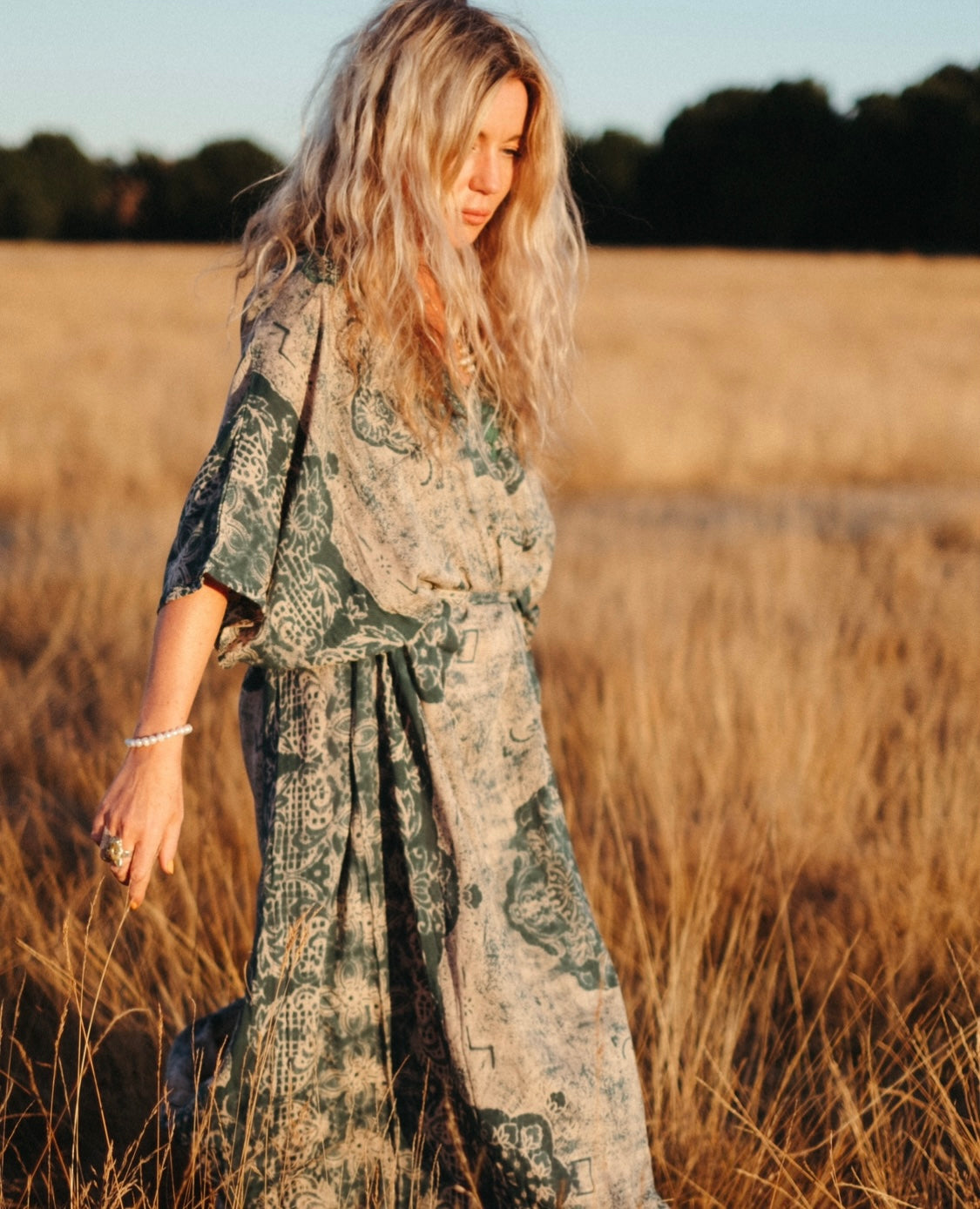 A fabulous multi use kaftan dress, perfect for floating around in hot climates. We use it as a day dress with flip flops into evening belted with a heel. As a bikini beach coverup, to put on after a shower to chic-relax comfortably and around the villa on warm evenings.