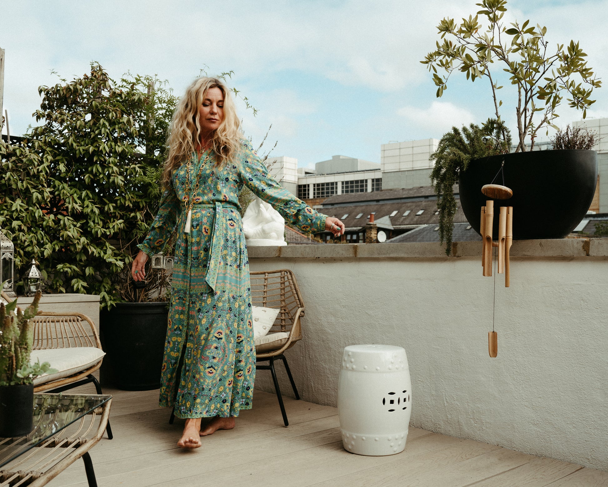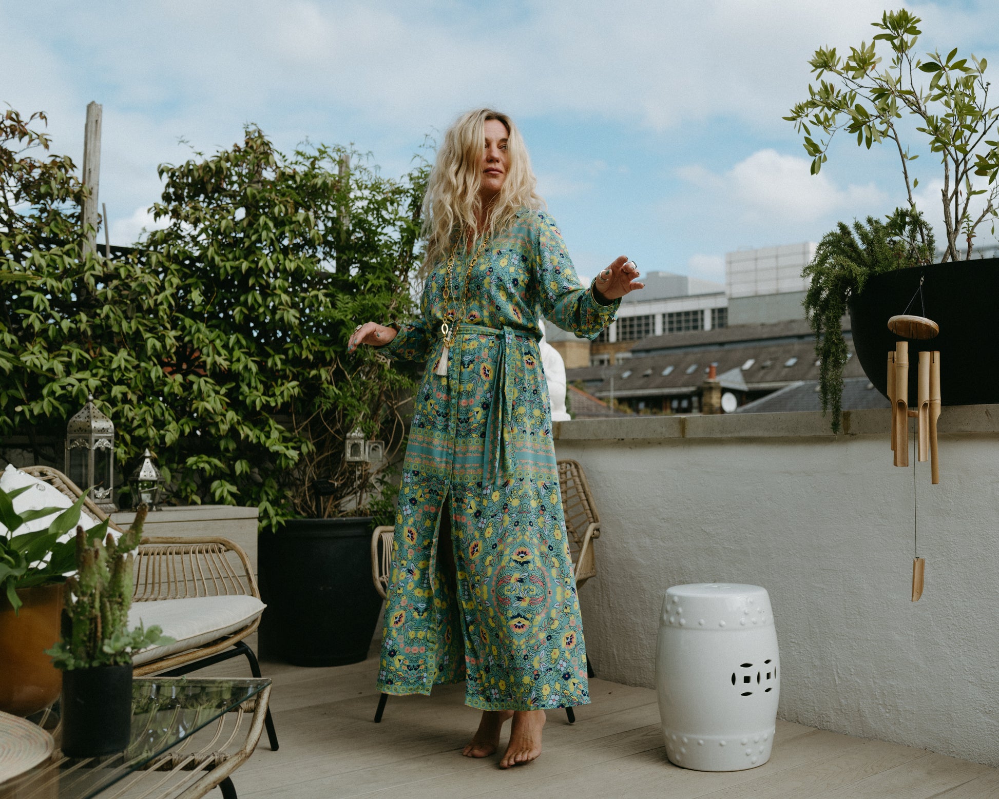 This 70's California inspired long sleaved chemise dress is super soft and super flattering! Made in the finest and softest, hand screen printed, small run, natural rayon voile fabric which feels wonderful against the skin and flows beautifully.