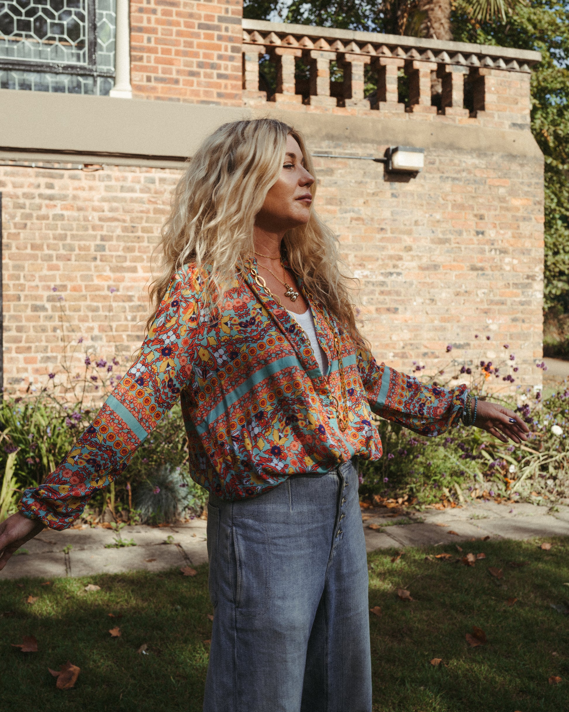 A darling of the collections, this 70's California inspired easy Lounge Shirt is super soft and super flattering! It has a half buttoned front so the smooth bottom makes it easy to tuck into skirts, trousers and shorts. Made in the finest and softest rayon voile fabric which feels wonderful against the skin is effortlessly light and airy.