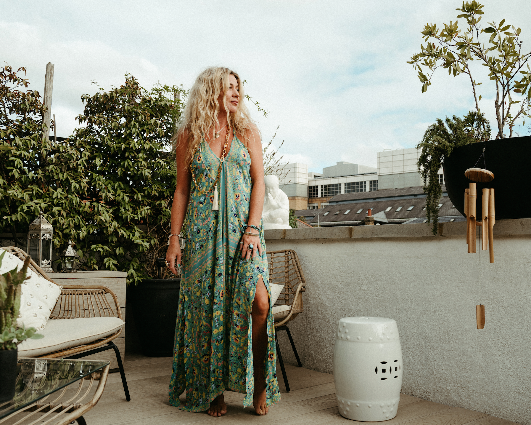 Feel every bit the mermaid in this beautiful super limited edition, aqua-turquoise green print summer dress. Easy and effortless to wear, it keeps you cool on the hottest days. with a low V neckline, side splits for ease of movement and a swishy and bohemian feel.