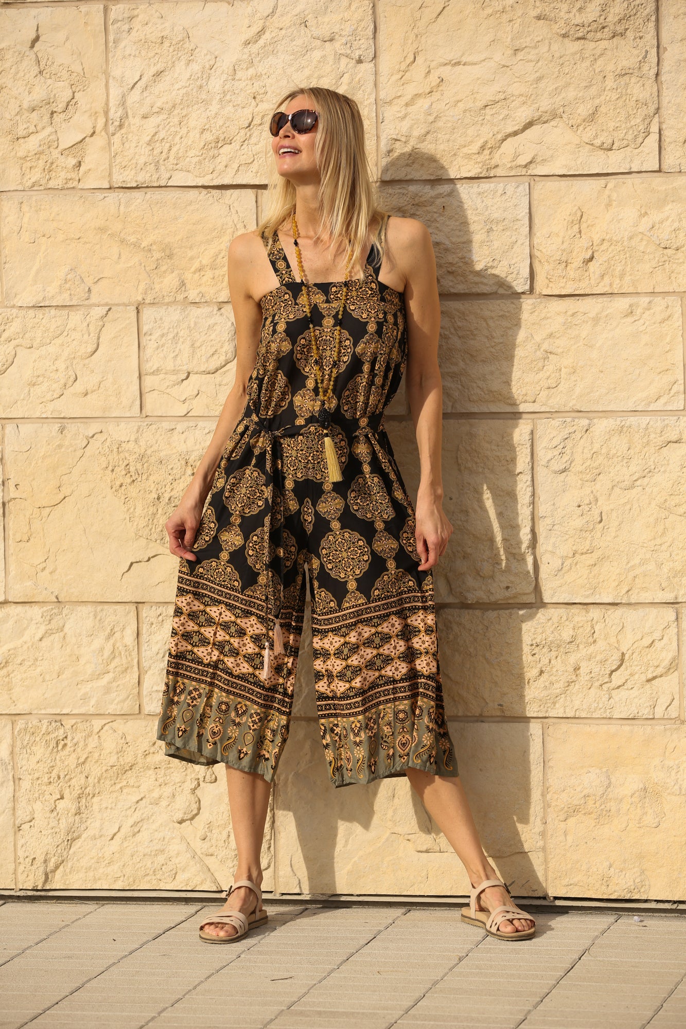 A fabulous and useful piece in our Journey through India Collection. This beautiful and super relaxed jump suit is made in the lightest and softest natural rayon voile fabric which feels wonderful against the skin. It's great travelling with flip-flops or perfect around the city with sneakers.