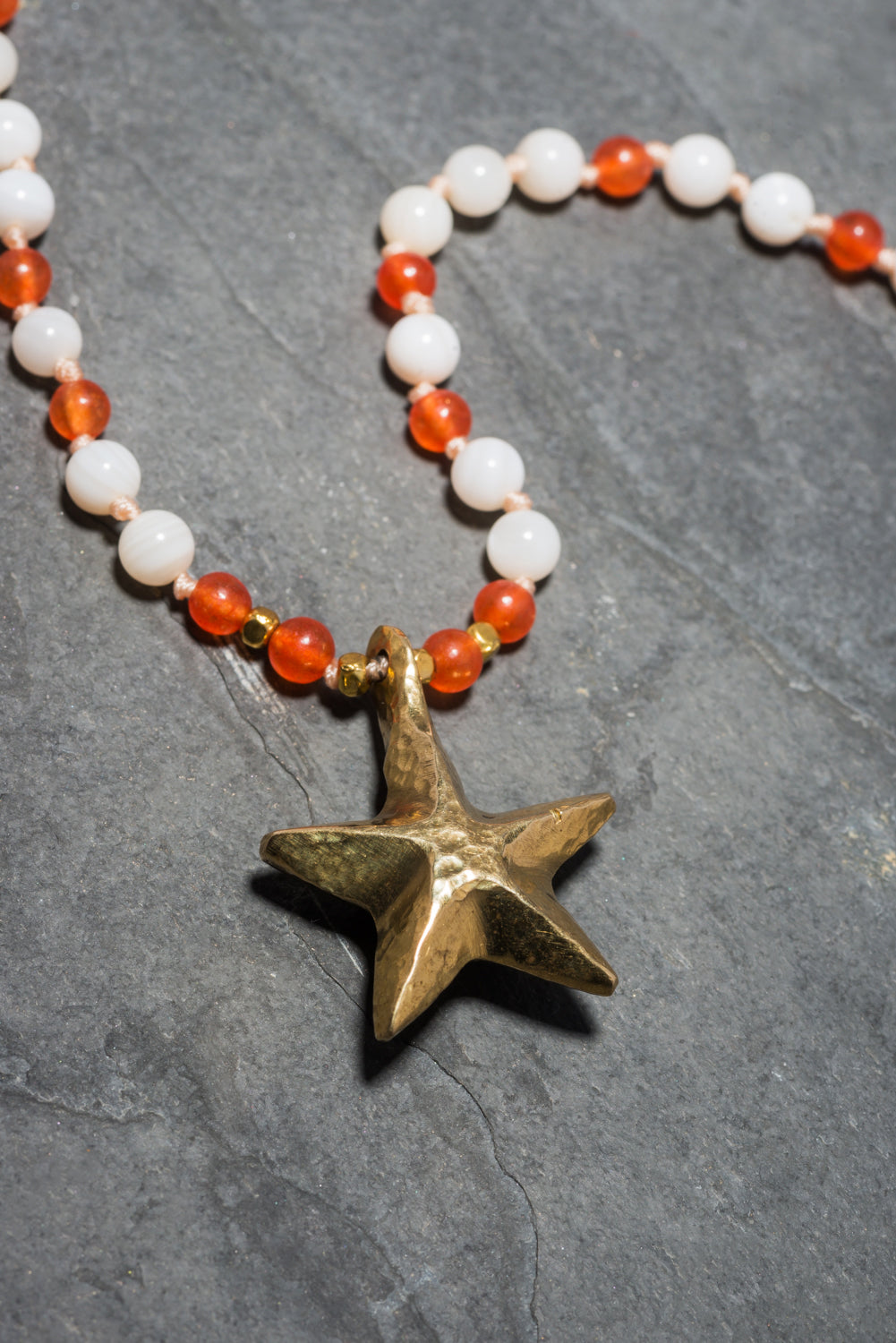The pendant is hand cast traditionally in sand and wax by a Maasai in the Ngong Hills of Kenya. This skillfully crafted necklace is as beautiful as it is unique, and makes a wonderful gift. The organic starfish pendant is made from recycled brass it has a weighty feel. Hand hammered and polished for a faceted finish. A very tactile piece.