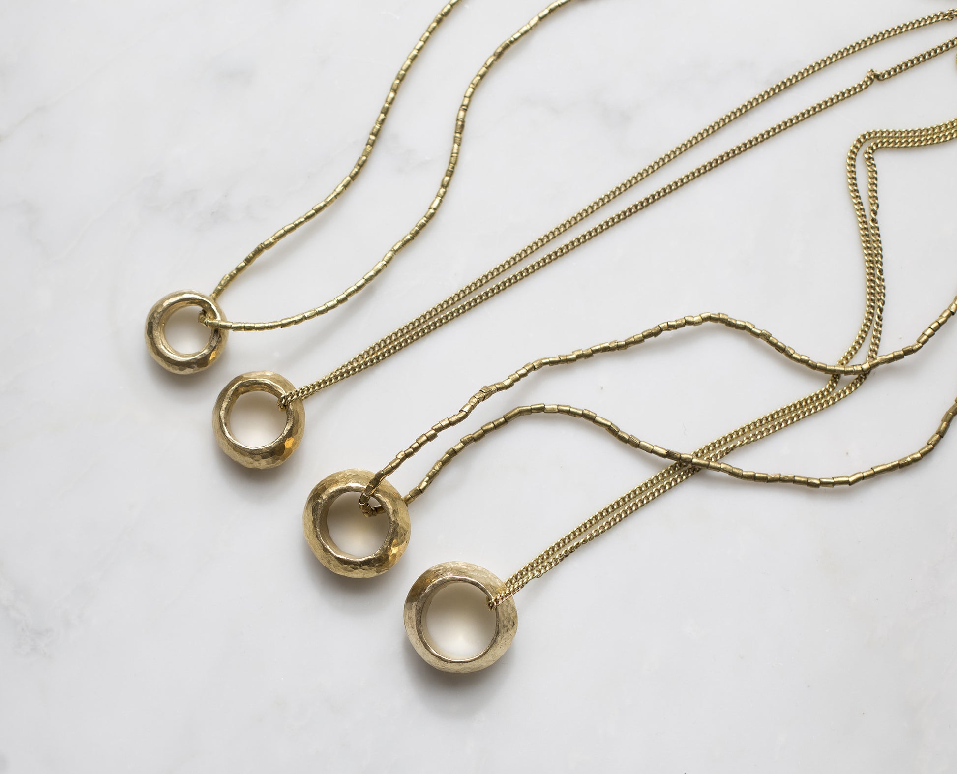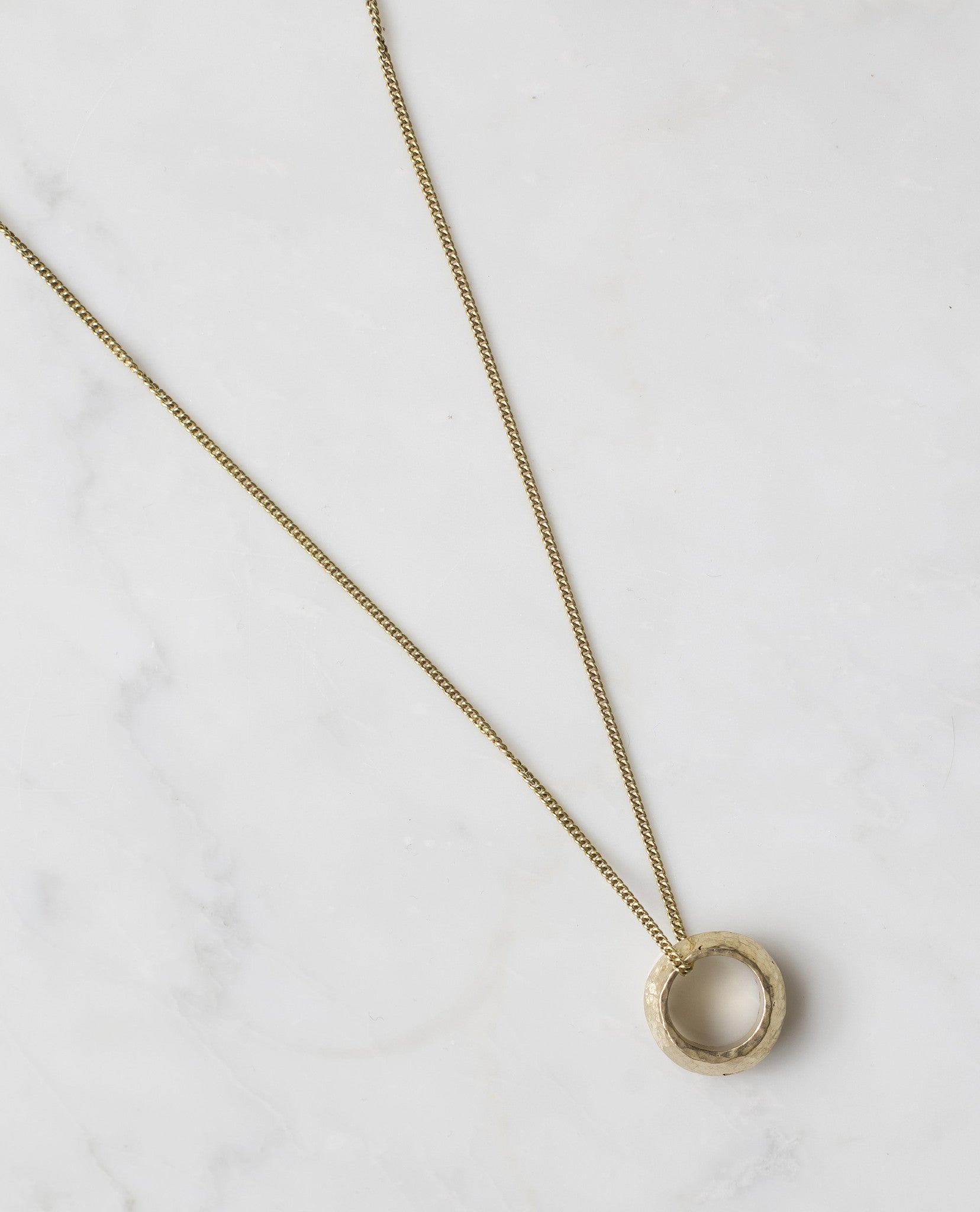 This necklace is our signature piece. Hand cast traditionally in sand and wax by a Maasai in the Ngong Hills of Kenya. This skillfully crafted necklace is as beautiful as it is unique, and makes a wonderful gift. Made from recycled brass and cast from a 200 year old Ethiopian Promise Ring. These rings are traditionally worn by women around the neck as a symbol of good luck and protection. Hand hammered and polished for a faceted finish.