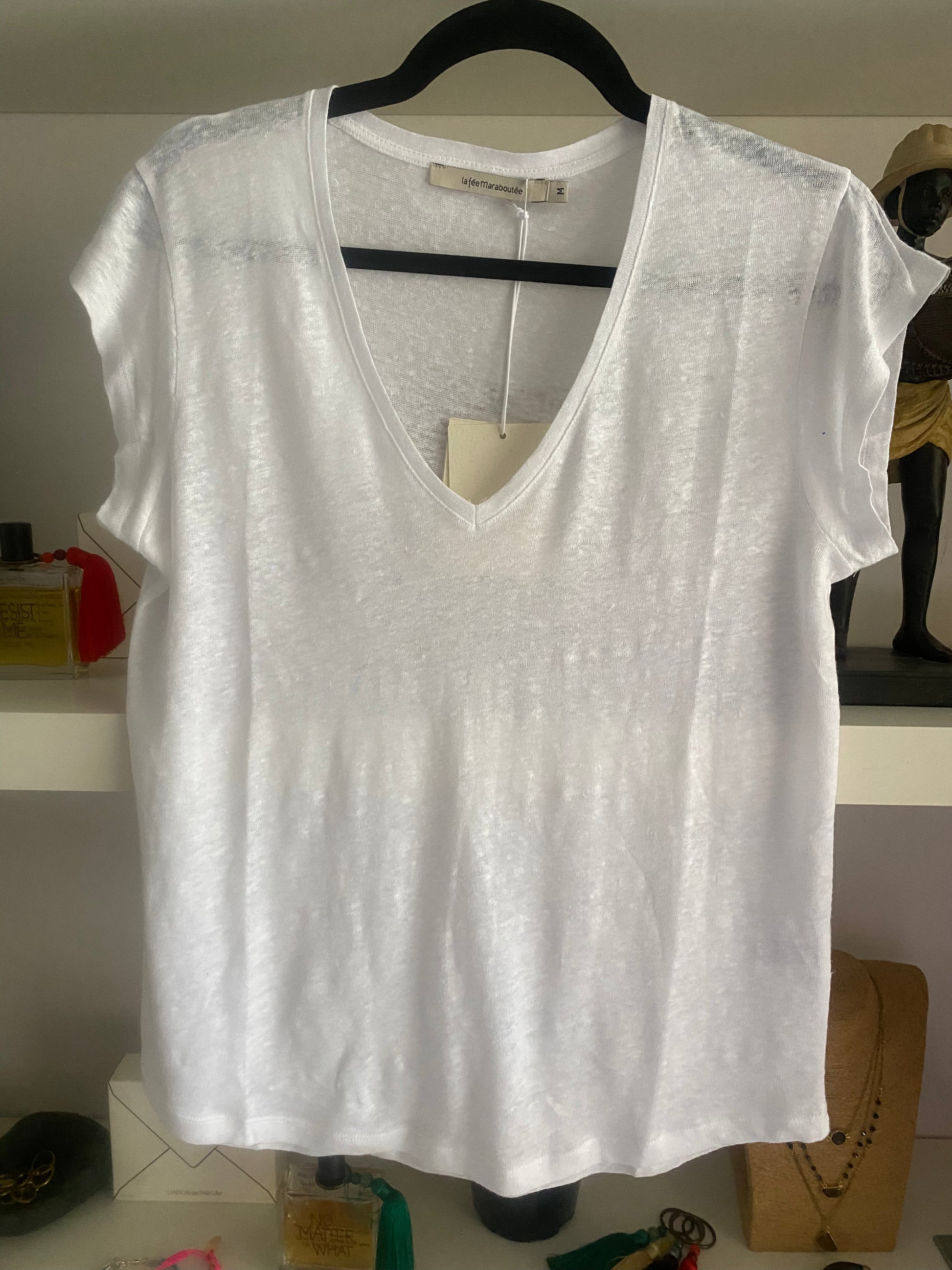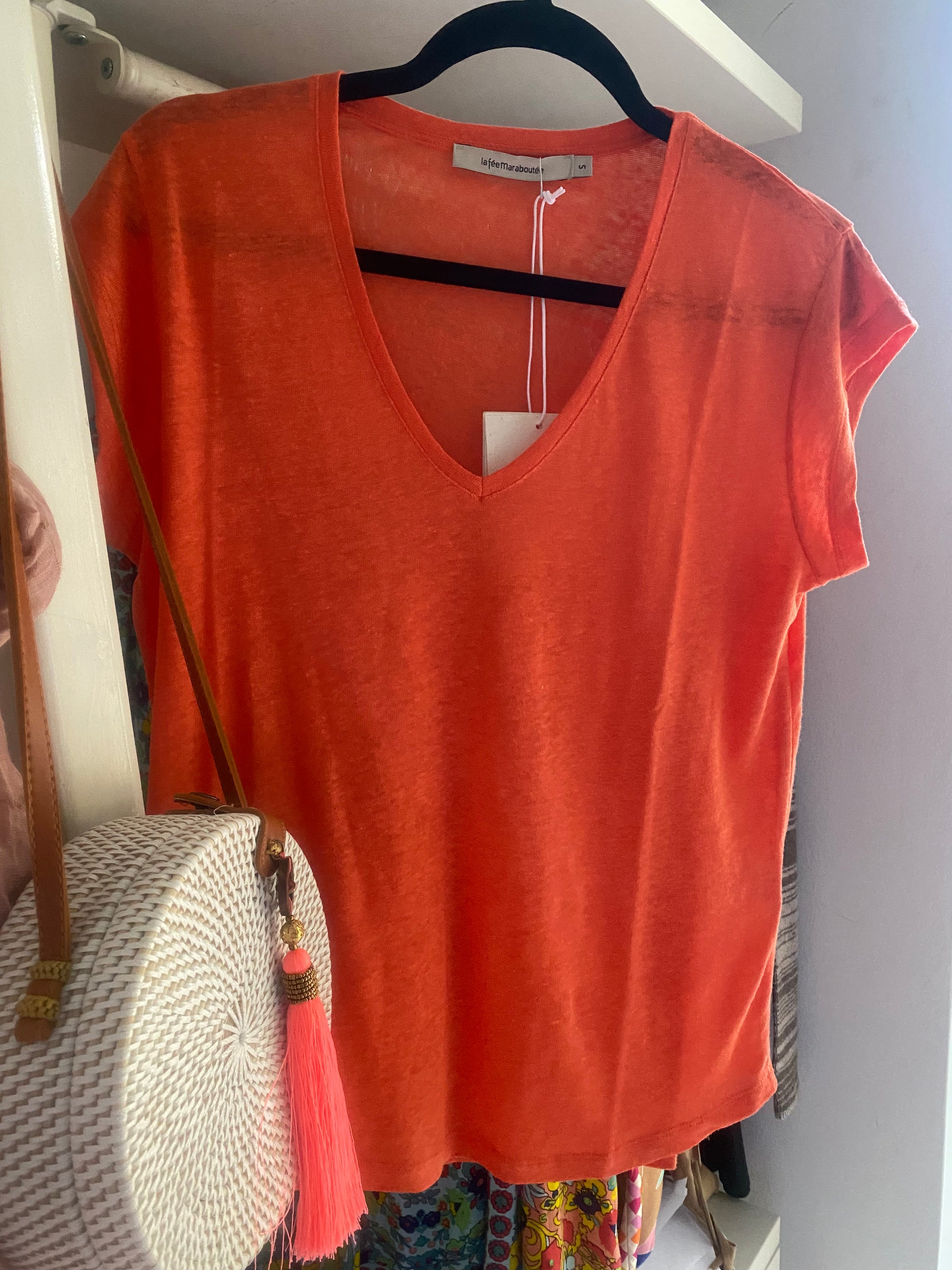The perfect fine linen tee! The slight translucent softness of the fabric makes these bold colours less solid but still vibrant. The perfect cut and neckline, makes them so easy and super flattering. Pure French linen, light and cool in hot weather. Easy to wash and care for.