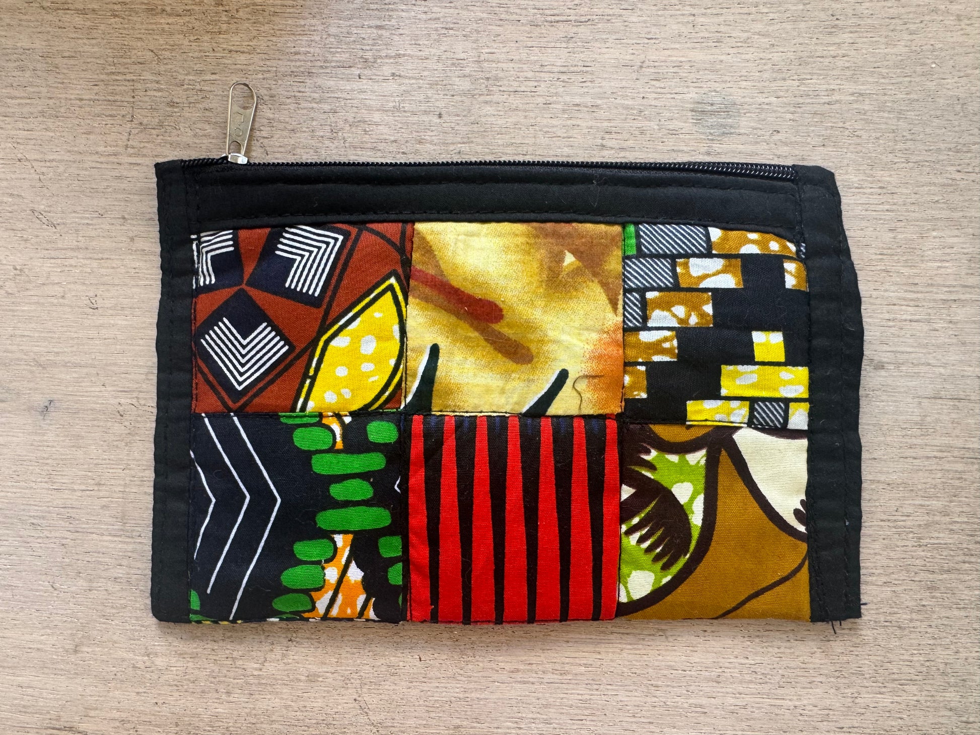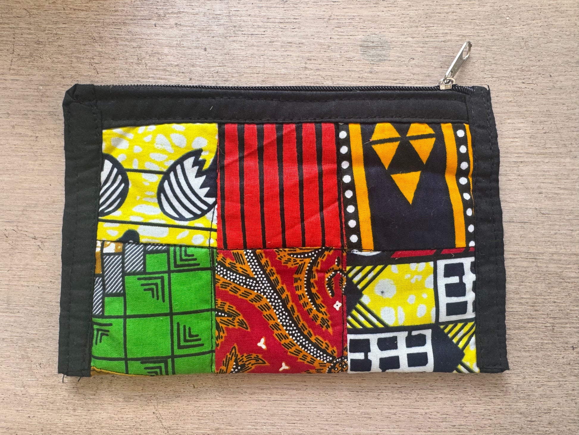 A bright and beautiful padded pouch hand made from traditional kitenge fabrics. The perfect solution to keep your jewels safe while travelling, nice and slim it slips into most cases easily (depending how many tassel you've stuffed in it). A zip close and simple black interior.