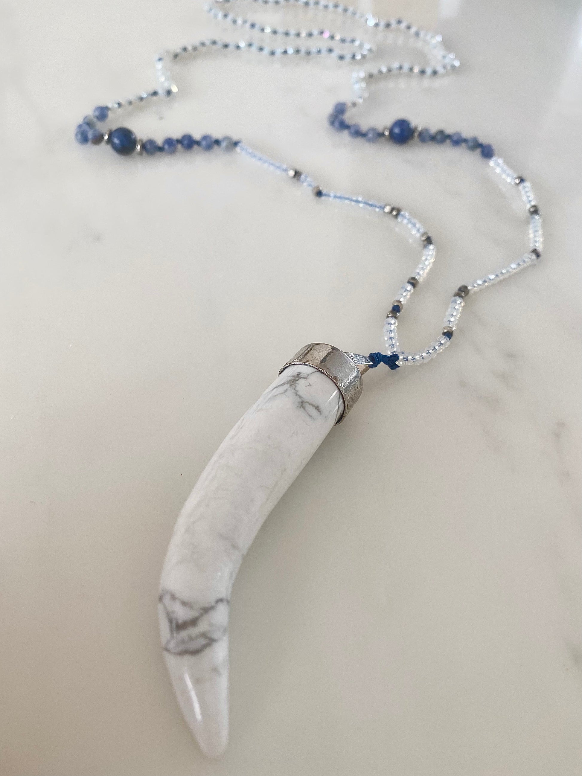 HOWLITE LAPIS TUSK PENDANT