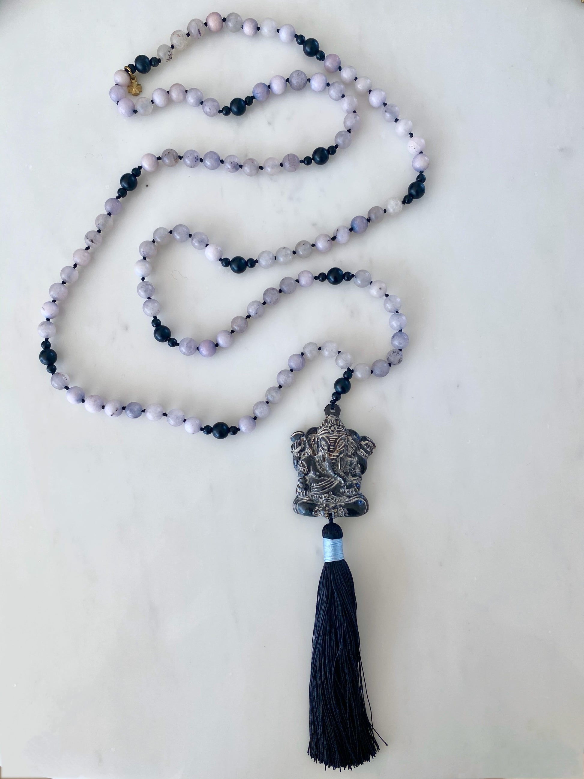 ONYX + BLASTED AGATE GANESHA MALA