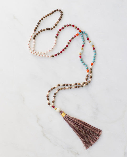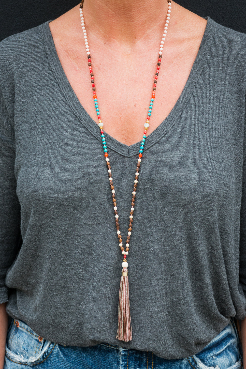 The tassel has a beautiful mix of sandalwood, blush and taupe hues making it easy to wear with most things.