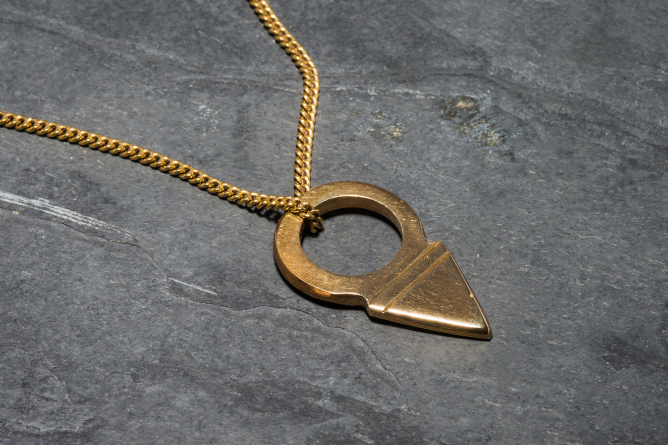 Crafted by our Maasai artisan in the Ngong Hills of Kenya, this hand-cast brass pendant draws inspiration from the North African Toureg Tanfouk talisman spear. With its clean design and unique two-groove detail, it offers a versatile and understated accessory for any wardrobe.